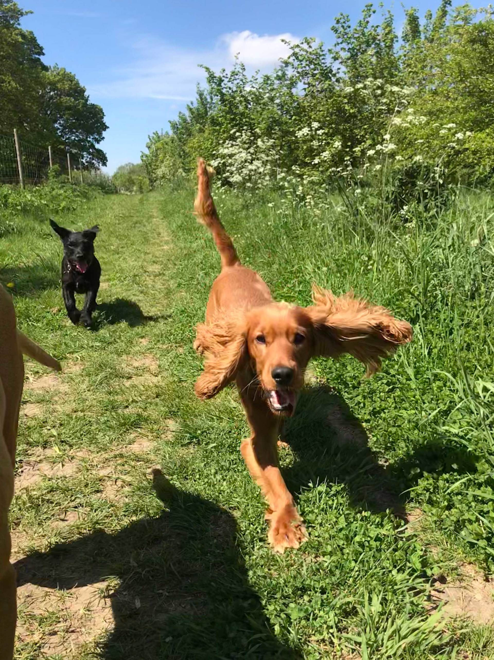 “My dogs get very excited when John turns up. He genuinely loves dogs. I have one elderly boy and a 3 year old, he caters for both of them. I especially love the little video clips I receive of my younger dog running around enjoying himself. I cannot recommend Barker & Waggs highly enough.”